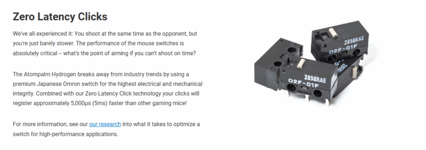 В матеріалі 2022 року, що вдалося знайти на сайті Omron, професійний гравець в Brawlhalla та Apex Legends з однієї з найбільших кіберспортивних команд Японії під ніком Dran, поділився цінними інсайтами про важливість перемикачів у конкурентній грі. Якщо чуток профільтрувати маркетингові вихваляння саме перемикачів Omron D2FC, то він підкреслює аспект, який часто ігнорується в технічних дискусіях – своєчасне спрацювання важливіше чистої швидкісті: “Наприклад, коли справа доходить до моменту, де наступний постріл вирішить, хто виграє, а хто програє, надзвичайно критично для вас мати можливість стріляти у потрібний момент. У цьому випадку, якщо клік відчувається занадто легким, ви отримаєте осічку, і тому це дуже важливо. Скажімо, коли ви хочете, щоб ваш персонаж розвернувся, вам потрібно багато рухати мишу. Переміщуючи мишу до краю килимка миші, а потім швидко назад до середини, я іноді клікаю помилково пальцем, якщо свіч має занадто легке спрацювання.“