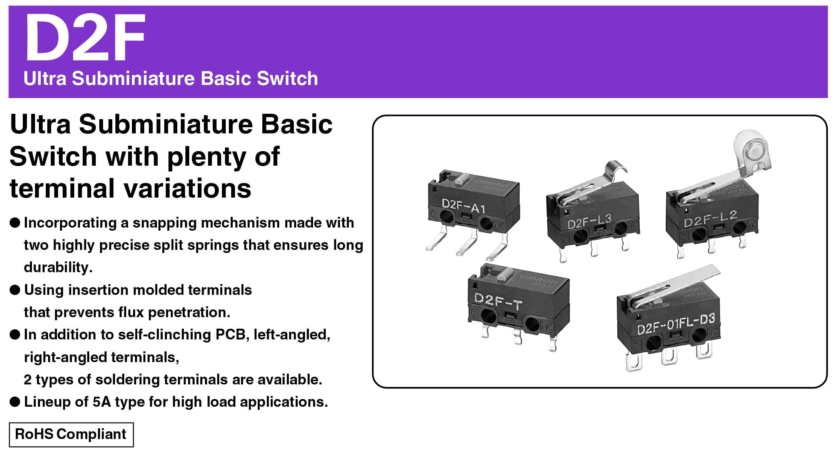 Omron | D2FC-F-7N | 60±15 / ~62 gf | 20/60/100M | – | Індустріальний стандарт |
