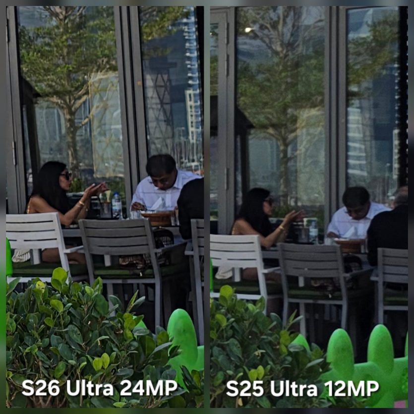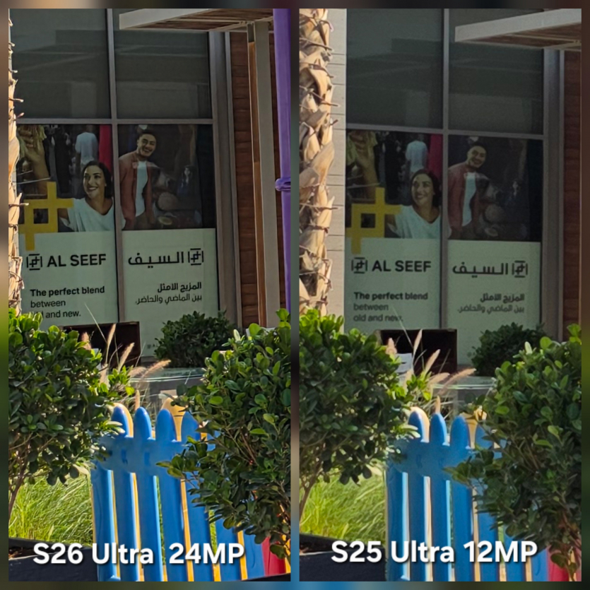 Окремо перевірили новий 24-мегапіксельний режим S26 Ultra проти 12 МП у S25 Ultra. При збільшенні 24 МП демонструє очевидну перевагу в деталізації. Алгоритми ШІ також допомагають зробити кадр різкішим і менш шумним. Водночас фото з S25 Ultra виглядає більш природним і менш “обробленим”.