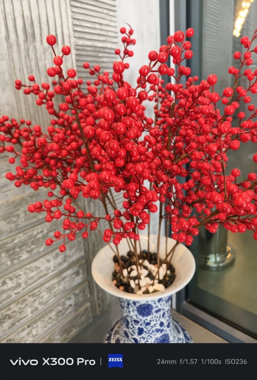 Зйомка вази з червоними декоративними ягодами стала непростим тестом для всіх трьох моделей. У Vivo зображення виявилося занадто яскравим і місцями пересвіченим, а також з розмиттям у певних зонах. Автори тесту відзначили, що найбільш природно сцену передав саме Galaxy S25 Ultra.
