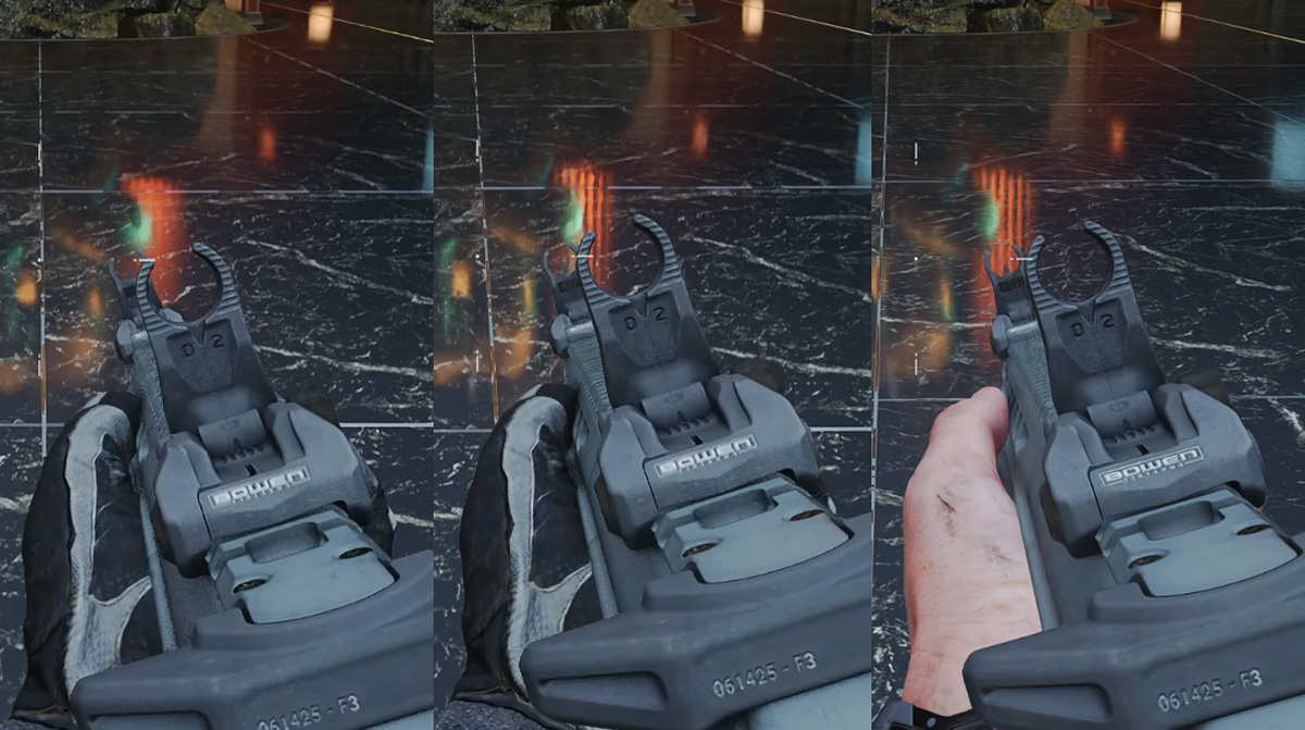 Що стосується технологій NVIDIA, ComputerBase стверджує, що обидва конкурентні варіанти демонструють незначну “хвилястість” у відблисках, але з технологією NVIDIA вона залишається ледь помітною, тоді як з AMD переростає у помітну мерехтливість. Іноді DLSS RR відновлює більше деталей, іноді FSR RR, і це навіть може перемикатися між статичними та рухомими кадрами. Дослідники роблять висновок, що Ray Regeneration ”не може конкурувати з DLSS Ray Reconstruction, принаймні не в Black Ops 7”, оскільки зображення залишається значно стабільнішим з DLSS.