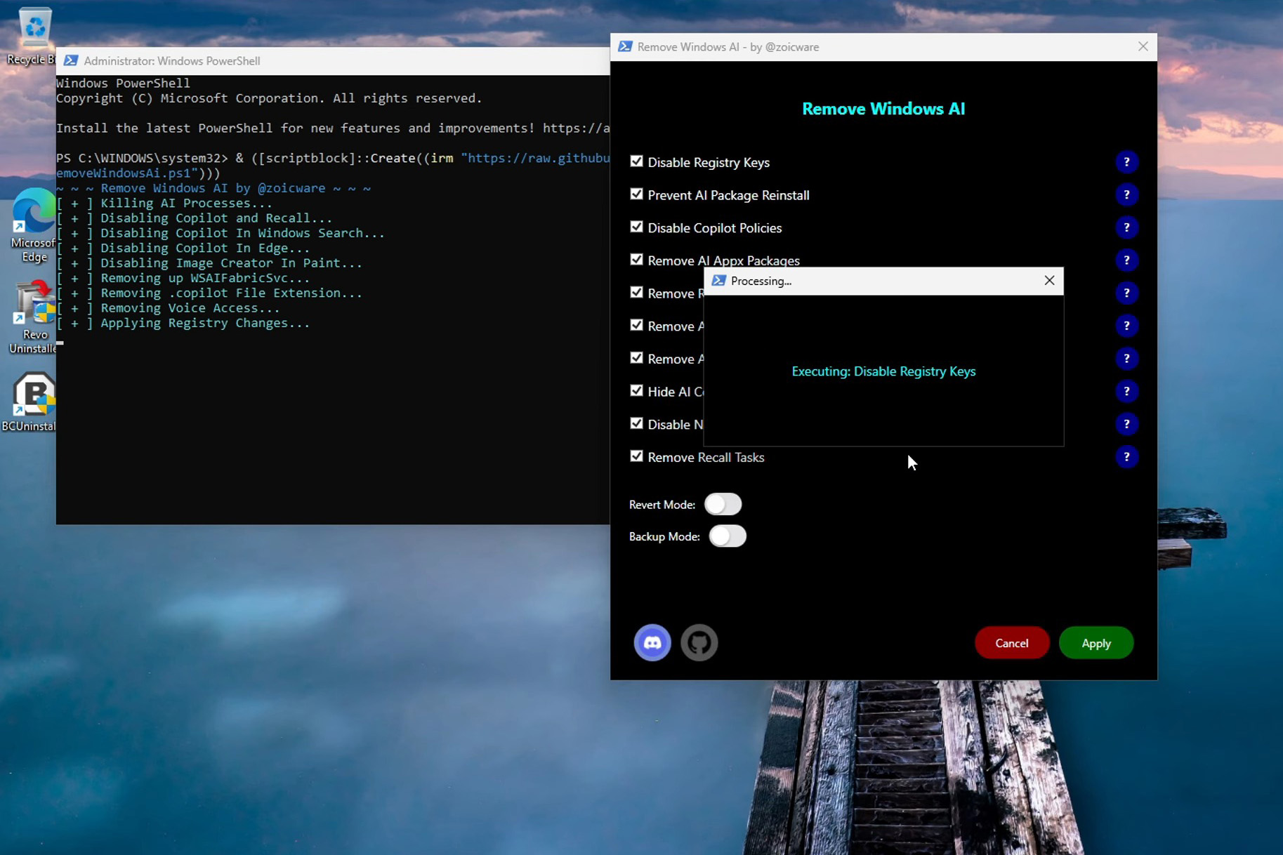Запущений Remove Windows AI / YouTube, zoic!