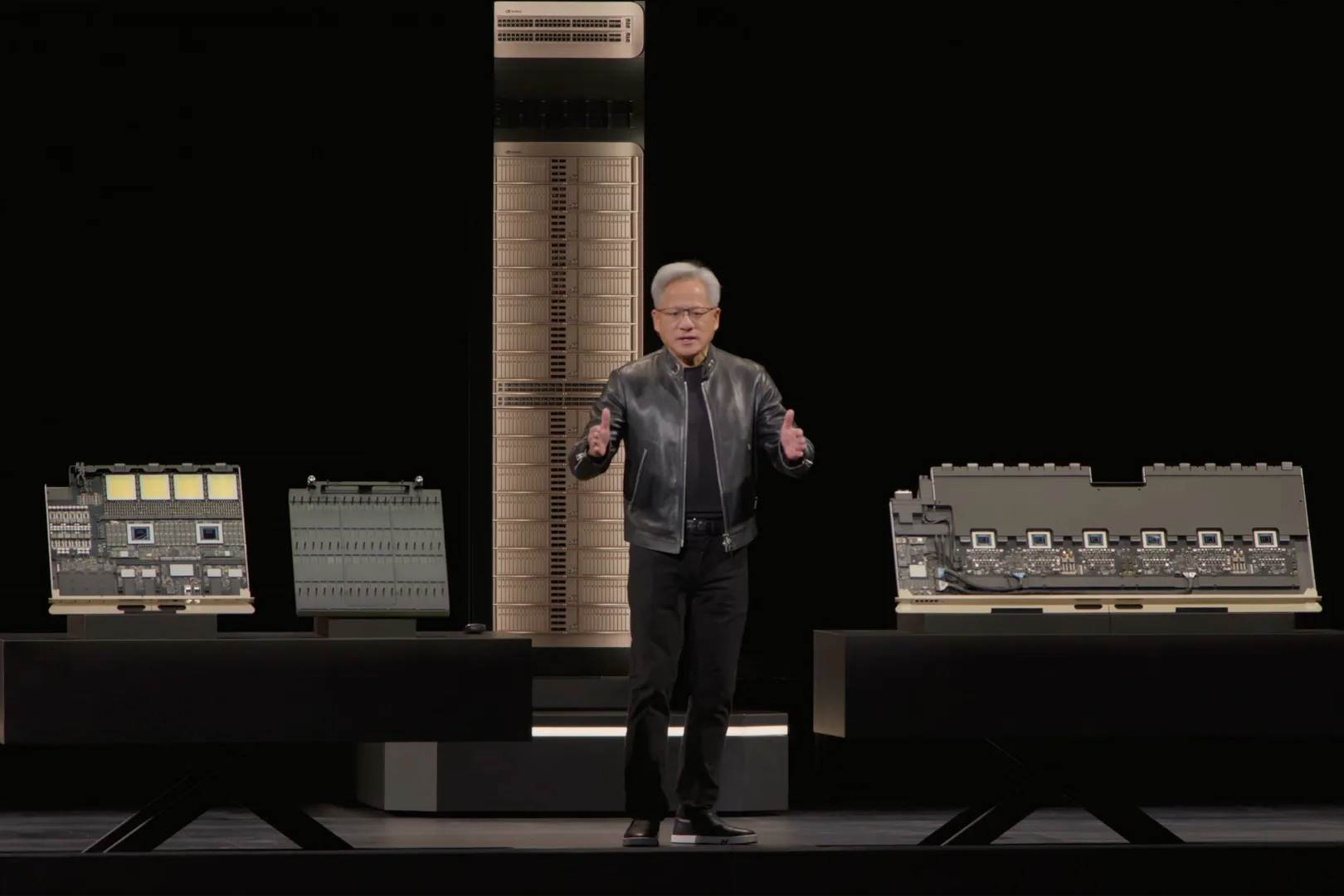 NVIDIA у понеділок продемонструвала нове покоління платформи для дата-центрів — tray-рішення для GPU Rubin Ultra. Чіп використовує 4 обчислювальні чіплети та оснащений 1 ТБ пам’яті HBM4E. Це робить його першим у галузі AI-прискорювачем із терабайтом пам’яті.