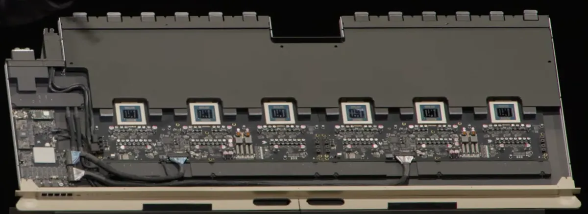 Привертає увагу відносно невеликий розмір пакета, що може свідчити про використання стекової архітектури, хоча це лише припущення. Tray Rubin Ultra майже повністю позбавлений кабелів, що спрощує складання серверів. Водночас це може означати, що NVIDIA продаватиме готові tray-модулі, зменшуючи роль партнерів до складання rack-систем, а не розробки власних материнських плат і серверних платформ.