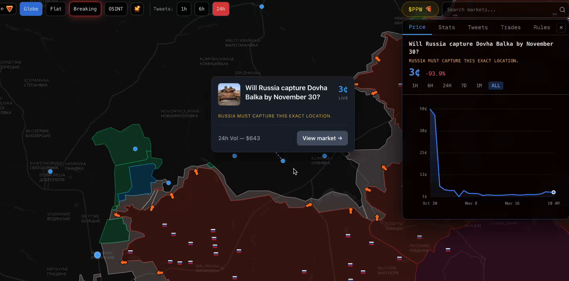 DeepStateLive’s Ukraine war map is now draped directly onto the globe, live and synced with @Polymarket .