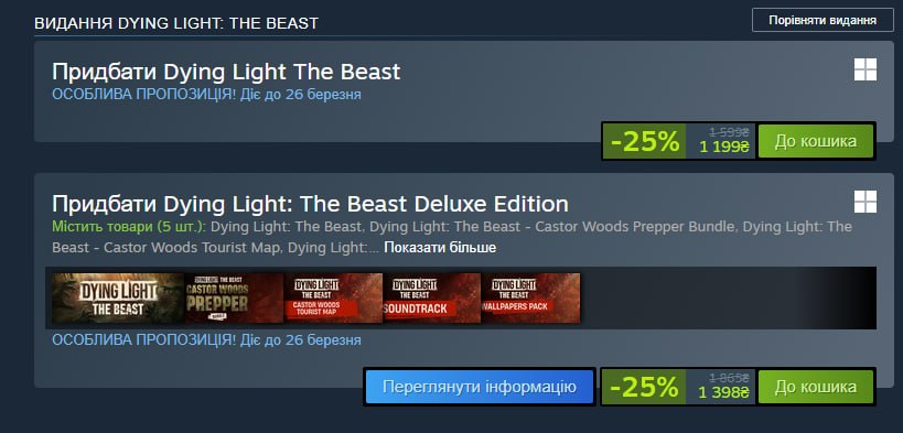 The Beast наразі продається зі знижкою близько 25 % і коштує 1,199 грн, $44.99, а Deluxe‑версія пропонується за 1,398 грн