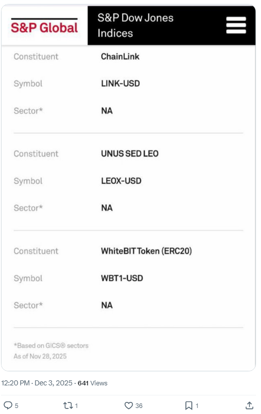 Монету WBT від WhiteBIT офіційно додано до п’яти криптовалютних індексів S&P Dow Jones після відповідності інституційним стандартам і критеріям ліквідності. Це історичний момент, оскільки вперше нативний токен криптобіржі з українським корінням був включений до індексів S&P.