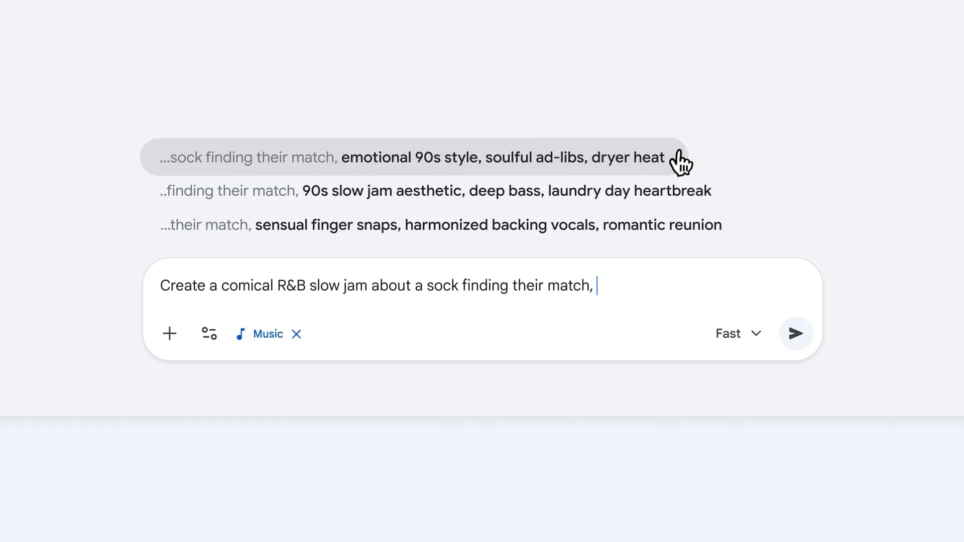 “Мене переповнює ностальгія. Напиши для моєї мами пісню про прекрасні часи, які ми провели в дитинстві, і про спогади про її домашні банани. Зроби її веселою афробіт-композицією зі справжньою африканською атмосферою”, — наводиться приклад у матеріалі 9to5google.