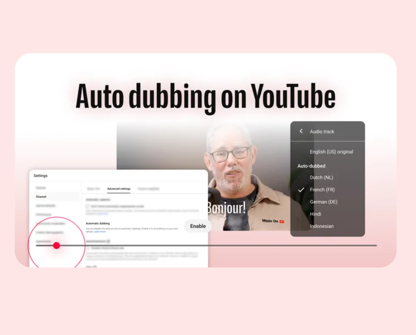 Функція Expressive Speech (“експресивна мова”) також поступово стає доступною для всіх каналів YouTube у восьми мовах: англійській, гінді, французькій, німецькій, індонезійській, італійській, португальській та іспанській. Її також показували у 2024 році на заході Made by YouTube. Це на кілька кроків попереду Expressive Captions, які компенсують брак нюансів у мові та звуці, додаючи до субтитрів акценти, тон і індивідуальність. YouTube використовує вашу історію переглядів, щоб обрати мову за замовчуванням для відео.
