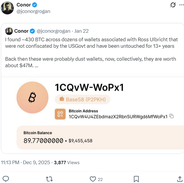 Історично Silk Road був одним із перших великих ринків у даркнеті, де розрахунки здійснювалися у біткоїні. Саме тому рух коштів із цього кластера уважно відстежується дослідниками. У січні 2025 року директор з продукту Coinbase Конор Гроган повідомляв, що виявив ще 430 BTC на адресах, пов’язаних зі співзасновником платформи Россом Ульбріхтом, що підтверджує наявність значних залишків, розкиданих по старих гаманцях цього кластера. Після нинішнього руху коштів Гроган повторно звернув увагу на цю історію та не виключив, що операції можуть здійснюватися під контролем самого Ульбріхта після його звільнення.