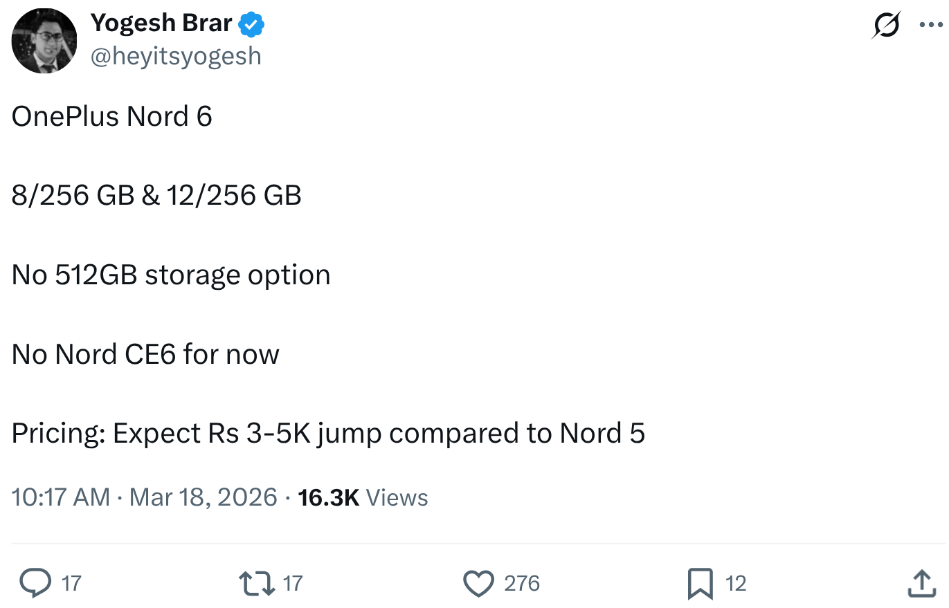 Однак така конструкція дорожча у виробництві, і компанія не завжди готова на неї йти у середньому ціновому сегменті. Щодо України — офіційних даних про вихід Nord 6 на вітчизняний ринок поки немає, але традиційно смартфони OnePlus потрапляють до України після виходу в сусідніх європейських країнах.